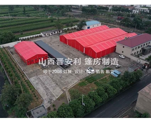 山西晉安利篷房制造有限公司,位于山西省太原市。我們專(zhuān)注設(shè)計(jì)、生產(chǎn)、制造、銷(xiāo)售、租賃各種跨度、尺寸的篷房。根據(jù)用戶(hù)要求提供訂制服務(wù)。 我們從一個(gè)小作坊起步,發(fā)展成為篷房、展覽設(shè)備的生產(chǎn)廠(chǎng)家,起初的產(chǎn)品主要用于戶(hù)外婚禮、房產(chǎn)奠基促銷(xiāo)、汽車(chē)展、服裝展、啤酒節(jié)、音樂(lè)節(jié)等各種展會(huì)、會(huì)展、會(huì)議會(huì)務(wù)活動(dòng),我們以質(zhì)量和服務(wù)贏(yíng)得了客戶(hù)的信任。 此外,我們還為制造業(yè)、物流業(yè)、商品流通業(yè),建設(shè)戶(hù)外裝配式店鋪、臨時(shí)倉(cāng)庫(kù),裝配式體育館,臨時(shí)廠(chǎng)房等。 除了生產(chǎn)制造外,我們還維修所有篷房配件,如各種厚度、不同尺寸的頂布、邊布、扣眼釘、拉繩、拉鏈等,凡本公司的產(chǎn)品用戶(hù)均可享受篷布免費(fèi)維修。